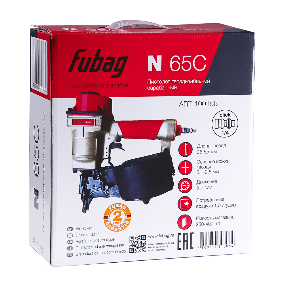 Характеристики FUBAG Пистолет гвоздезабивной барабанный N65C