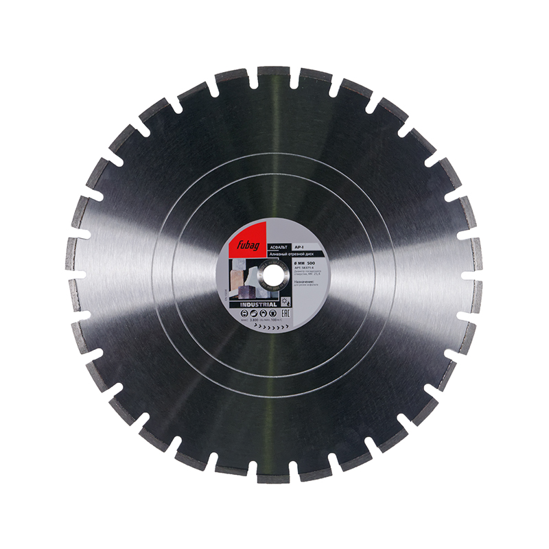 Характеристики Алмазный отрезной диск FUBAG AP-I D500 мм/ 25.4 мм по асфальту