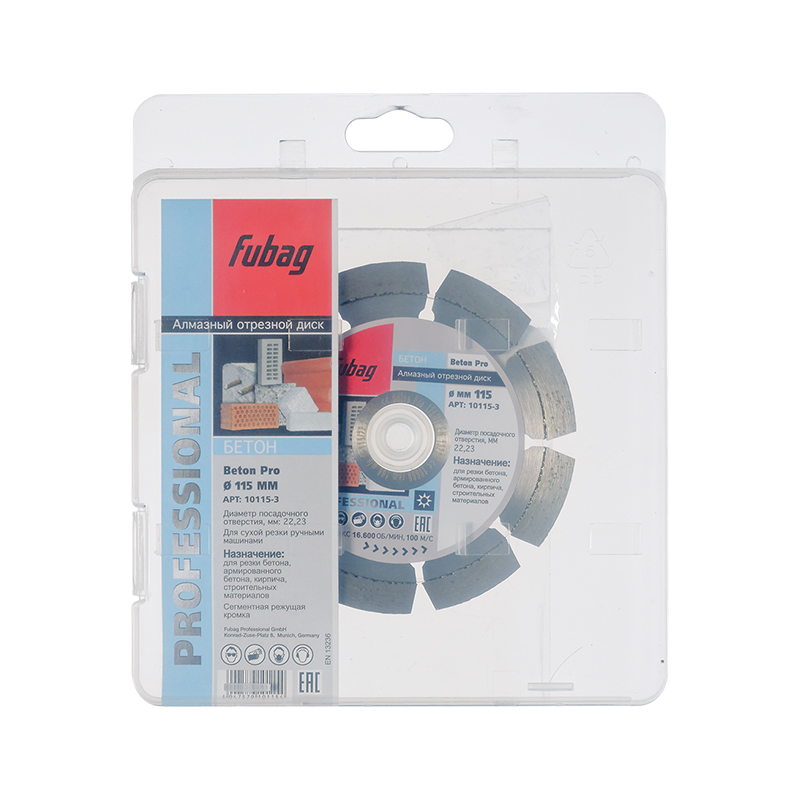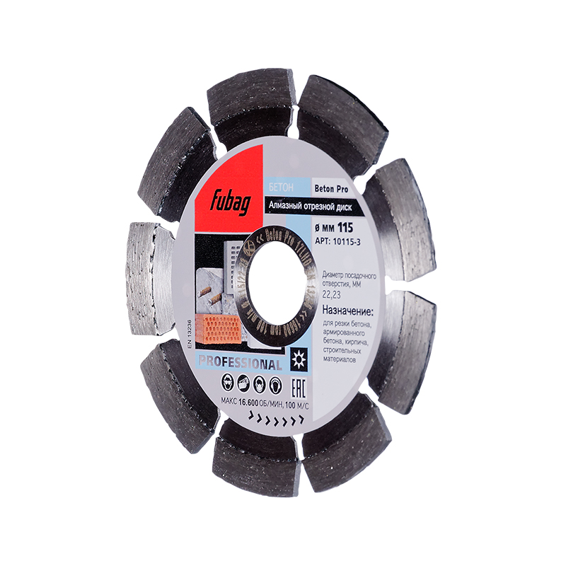 Характеристики Алмазный отрезной диск FUBAG Beton Pro D115 мм/ 22.2 мм по бетону