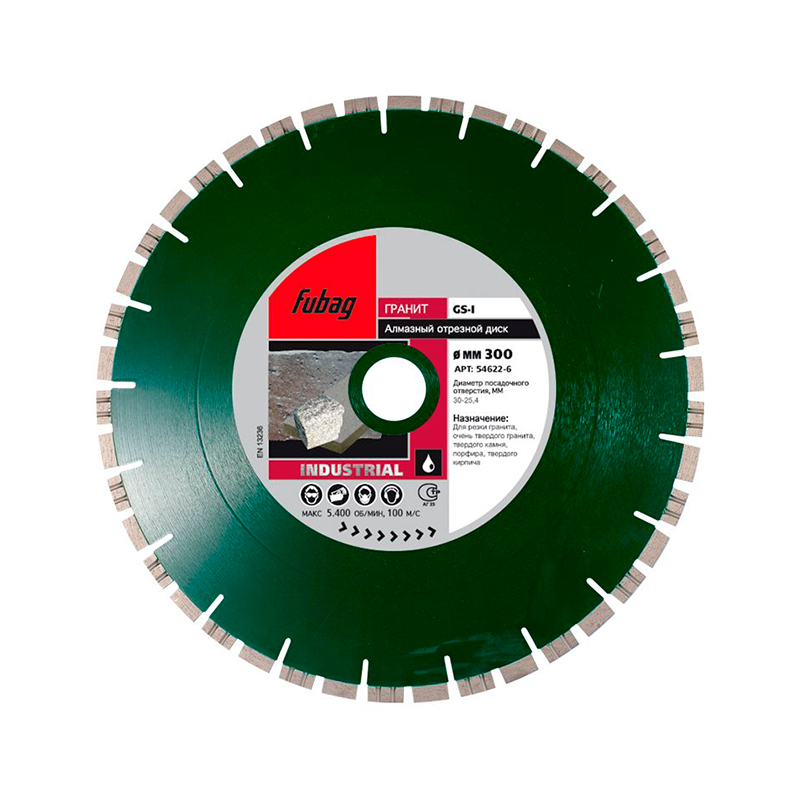 Характеристики Алмазный отрезной диск FUBAG GS-I D300 мм/ 30-25.4 мм по граниту