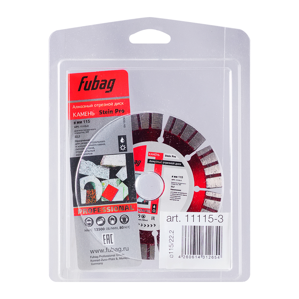 Характеристики Алмазный отрезной диск FUBAG Камень Про (Stein Pro) D125 мм / 22,2 мм по камню
