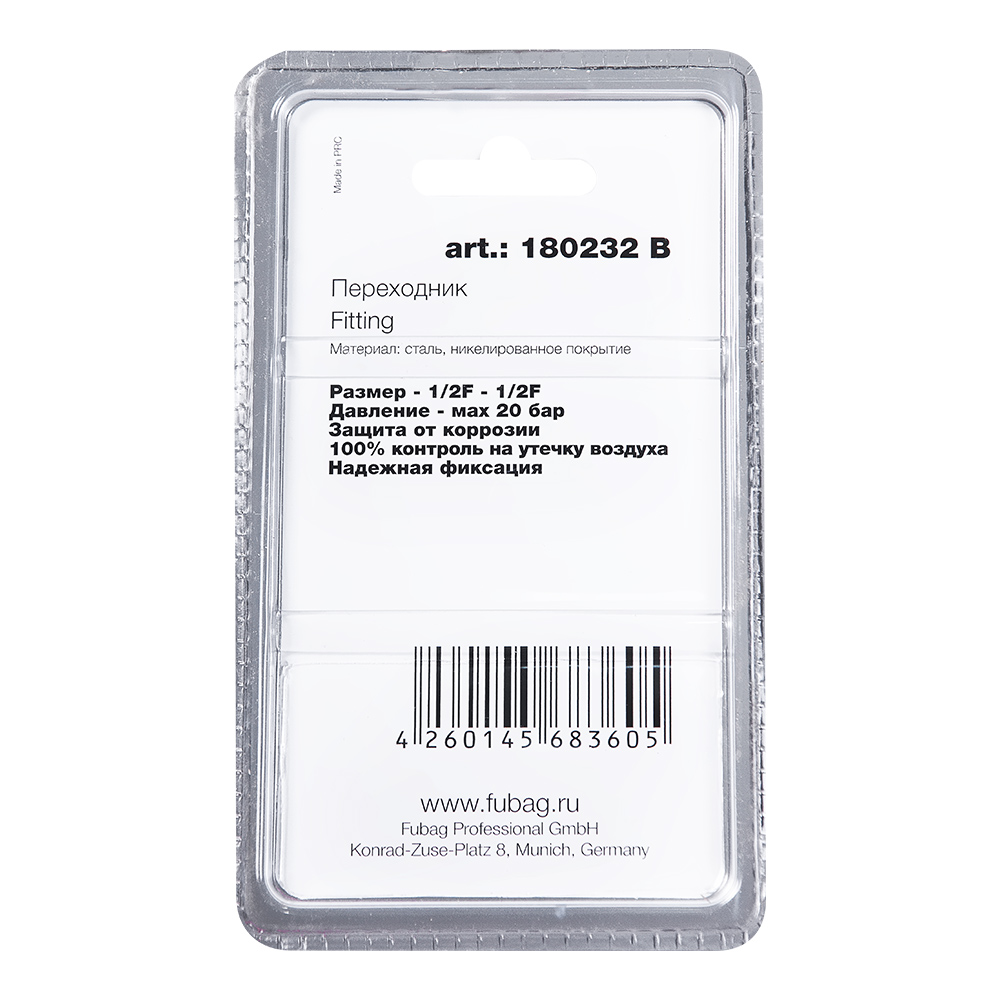 Характеристики FUBAG Переходник 1/2 дюйма F - 1/2 дюйма F, блистер 1 шт