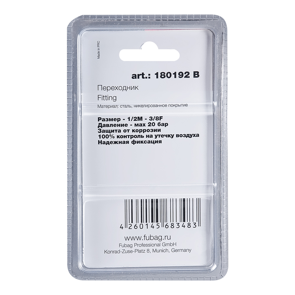 Характеристики FUBAG Переходник 1/2 дюйма M на 3/8 дюйма F, блистер 1 шт