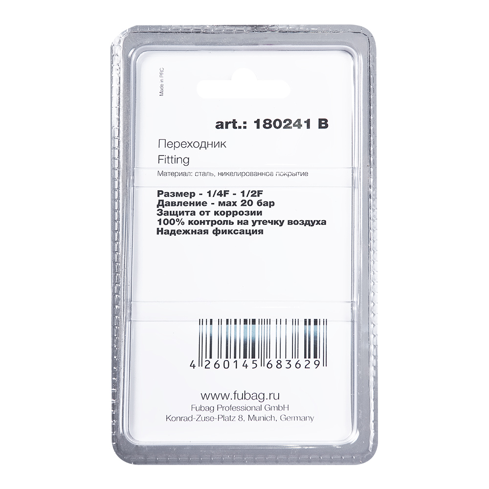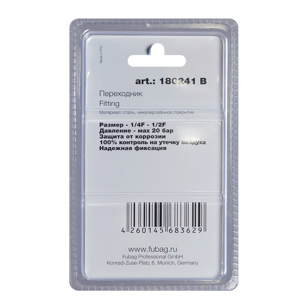 Характеристики FUBAG Переходник 1/4 дюйма F - 1/2 дюйма F, блистер 1 шт