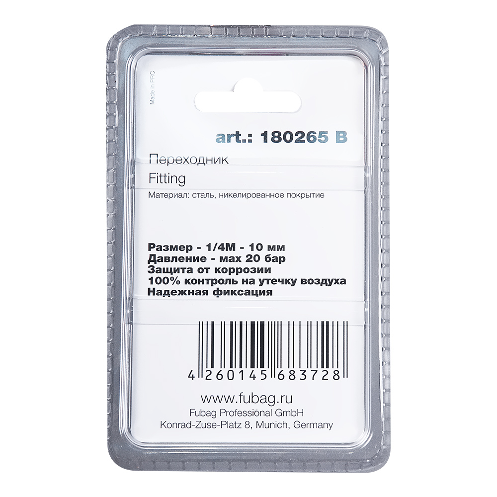 Инструкции о FUBAG Переходник 1/4 дюйма М на елочку 10мм с обжимным кольцом  15Х18мм, блистер 1 шт