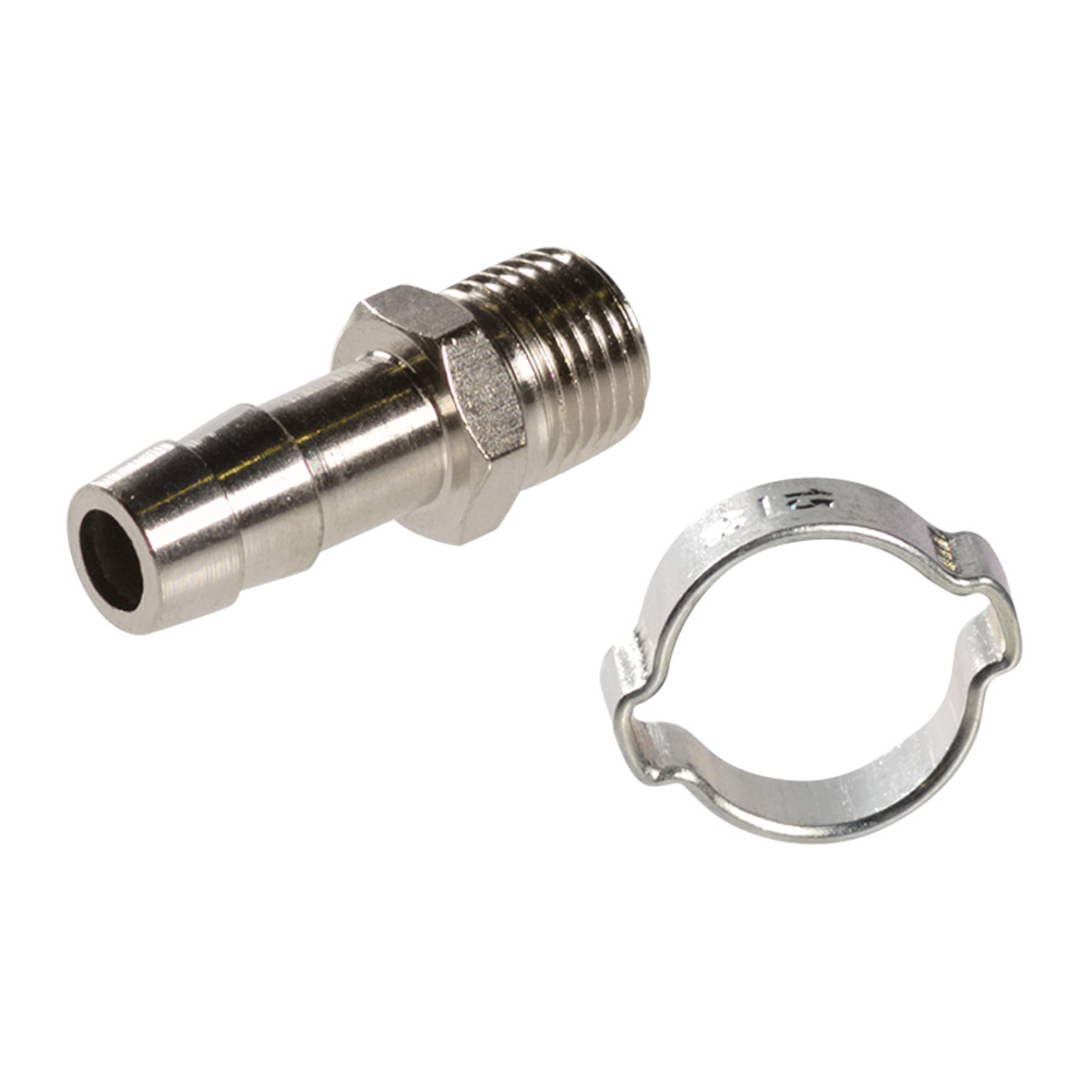 Характеристики FUBAG Переходник 1/4 дюйма М на елочку 10мм с обжимным кольцом  15Х18мм, блистер 1 шт