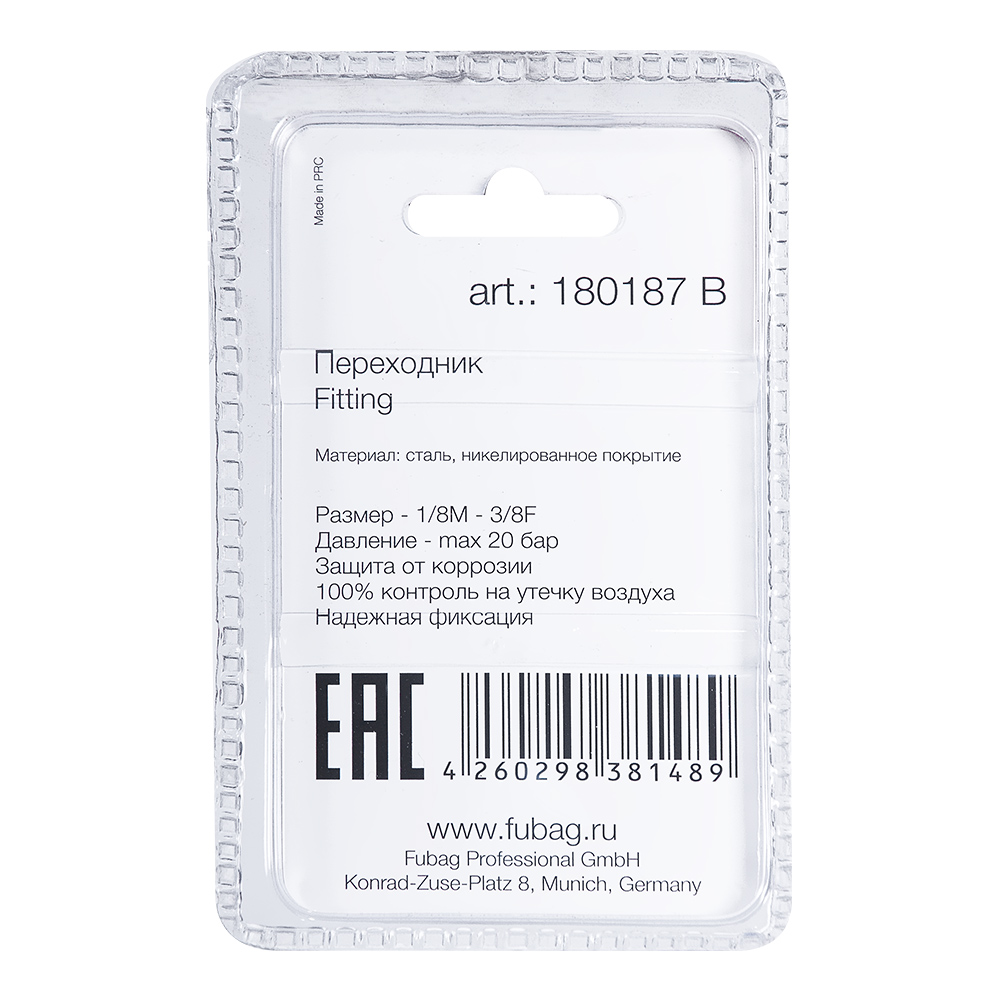Характеристики FUBAG Переходник 1/8 дюйма M на 3/8 дюйма F, блистер 1 шт.
