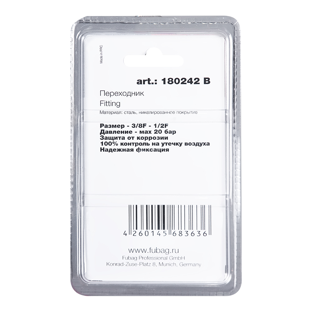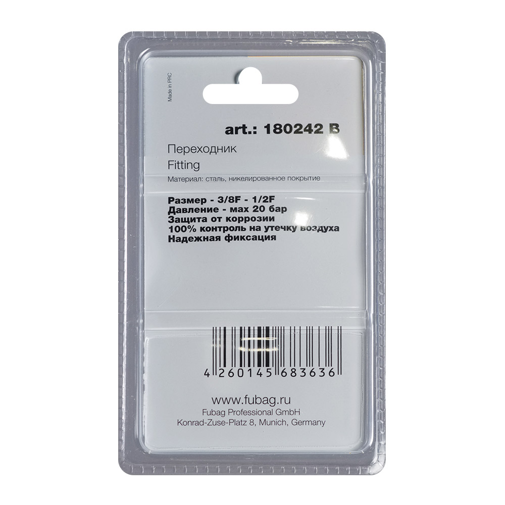 Характеристики FUBAG Переходник 3/8 дюйма F - 1/2 дюйма F, блистер 1 шт