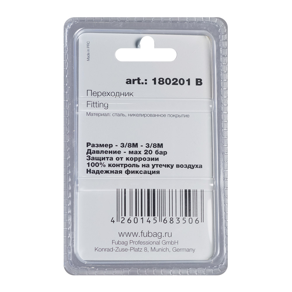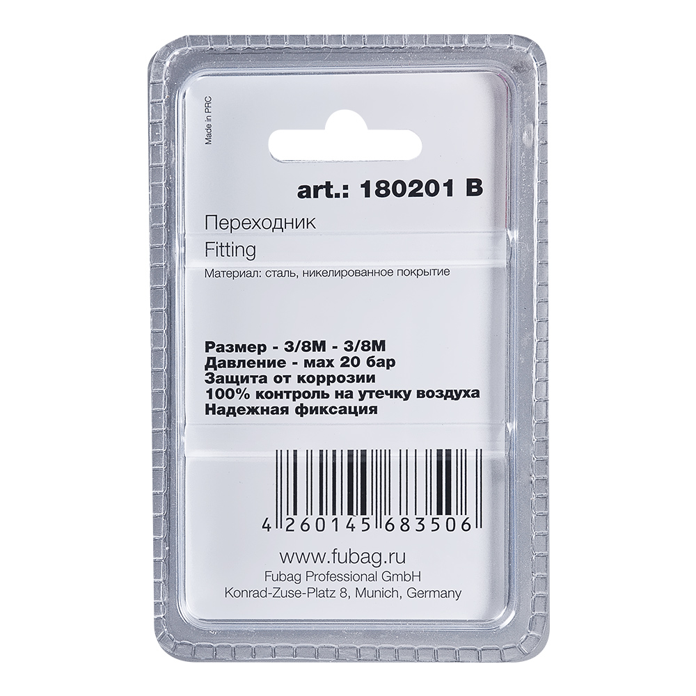 Характеристики FUBAG Переходник 3/8 дюйма M на 3/8 дюйма М, блистер 1 шт