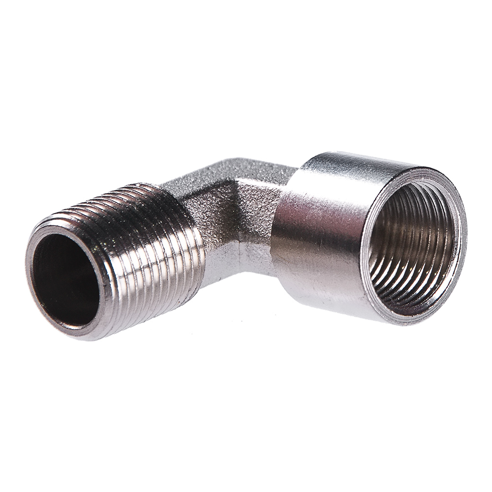L-образный переходник (уголок) соединяет участки пневмосистемы под углом 90°. Крепление - резьба 3/8". Поставляется в блистере.