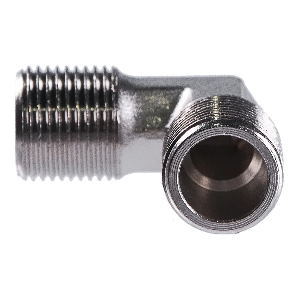 L-образный переходник (уголок) соединяет участки пневмосистемы под углом 90°. Крепление - резьба 3/8".