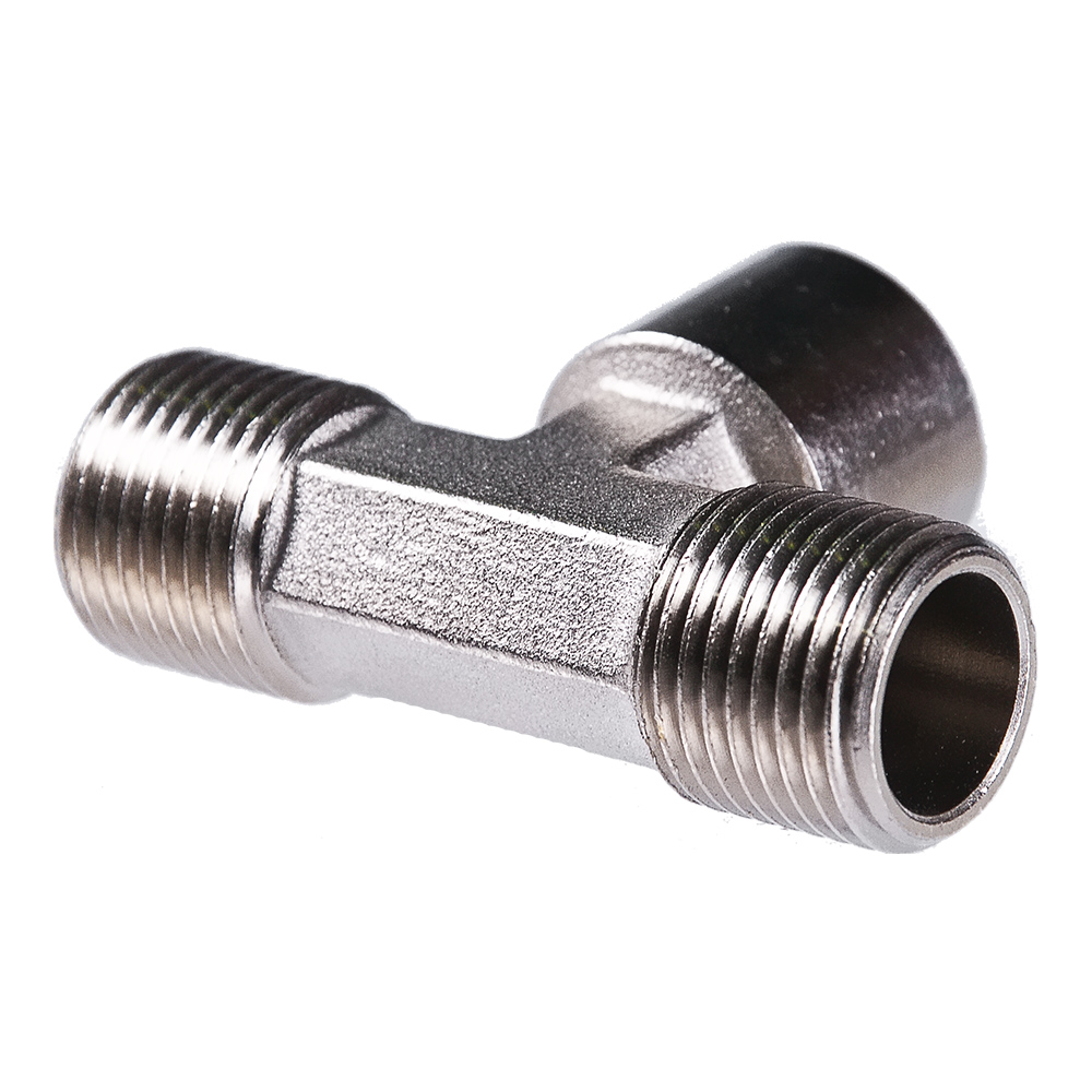 T-образный переходник (тройник) позволяет подсоединить к пневмомагистрали дополнительный участок. Крепление - резьба 1/2".