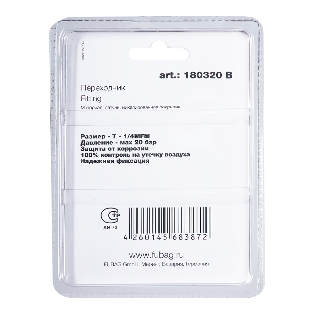 Характеристики FUBAG Переходник T - 1/4 дюйма MFM, блистер 1 шт