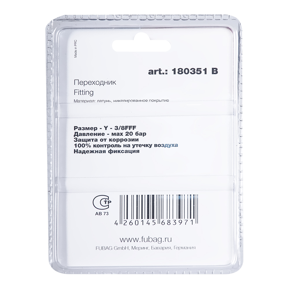 Характеристики FUBAG Переходник Y - 3/8 дюйма FFF, блистер 1 шт