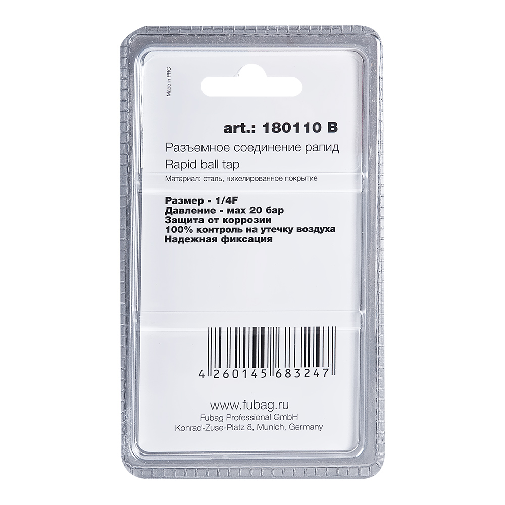 Характеристики FUBAG Разъемное соединение рапид (муфта), 1/4 дюйма F, внутр. резьба, блистер 1 шт