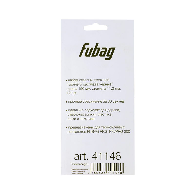Характеристики FUBAG Клеевые стержни черные PRGC 150