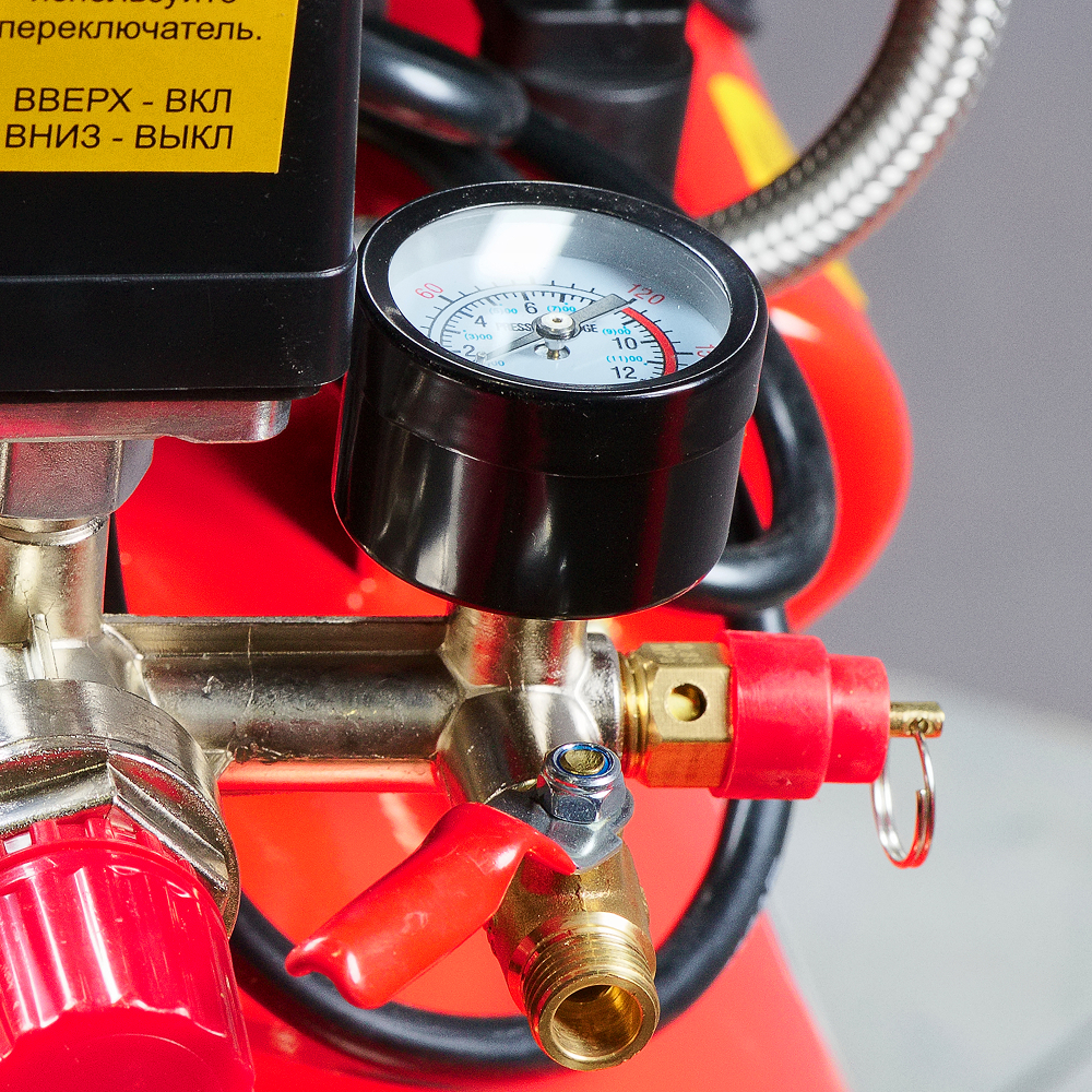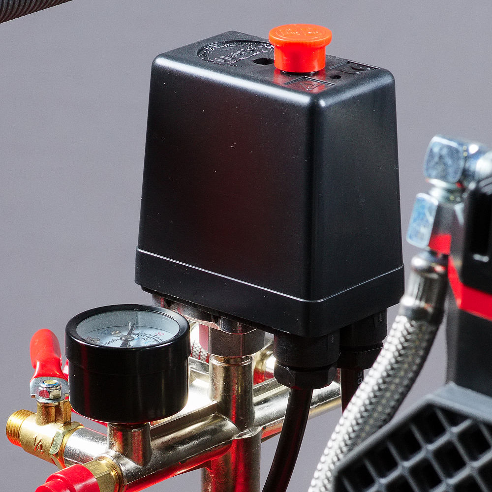 - Прессостат для поддержания заданного давления в ресивере и обеспечения повторного запуска.