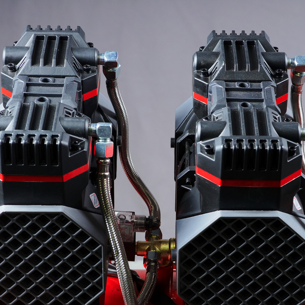 Отсутствие масла позволяет легко транспортировать компрессор в любом положении без риска протечек.