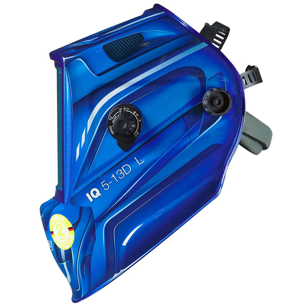 Маска с уникальным 3-D дизайном IQ 5-13D L в синем цветовом исполнении с автоматическим светофильтром защищает глаза и лицо от искр, брызг и вредного излучения при нормальных условиях сварки. Сварочная маска с автоматическим светофильтром готова к использованию. Вам только нужно отрегулировать положение головного крепления.Маска «Хамелеон» IQ 5-13D L предназначена для продолжительных сварочных работ в автосервисе или на небольшом производстве. Светофильтр системы «Хамелеон» обеспечивает автоматическое затемнение при зажигании сварочной дуги и быстро возвращается назад в прозрачное состояние при ее отсутствии, что позволяет экономить время и всегда работать обеими руками. Скорость срабатывания составляет 1/25000 секунды. Возврат в светлое состояние регулируется и происходит с задержкой 0,15-0,8 секунд. Усовершенствованный механизм регулировки крепления маски позволяет настраивать угол наклона, сдвига вперед/назад и размер.