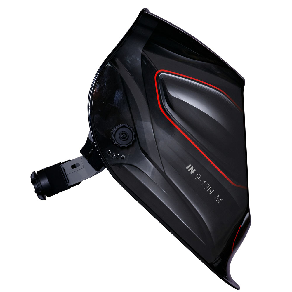 Профессиональная сварочная маска «Хамелеон» IN 9-13N M используется во время сварочных работ и предназначена для защиты лица, глаз и шеи во время выполнения сварочных работ от излучений сварочной дуги, а также от ожогов брызгами раскаленного металла и искр.Эксплуатационные характеристики сварочных масок серии IN позволяют безопасно использовать их для решения задач по сварке на производствах, в автосервисах и так далее – т.е. в местах, где люди работают со сваркой постоянно и интенсивно. Светофильтр системы «Хамелеон» обеспечивает автоматическое затемнение при зажигании сварочной дуги и быстро возвращается назад в прозрачное состояние при ее отсутствии, что позволяет экономить время и всегда работать обеими руками. Скорость срабатывания составляет 1/25000 секунды. Возврат в светлое состояние регулируется и происходит с задержкой от 0,1 до 1,0 секунды.
