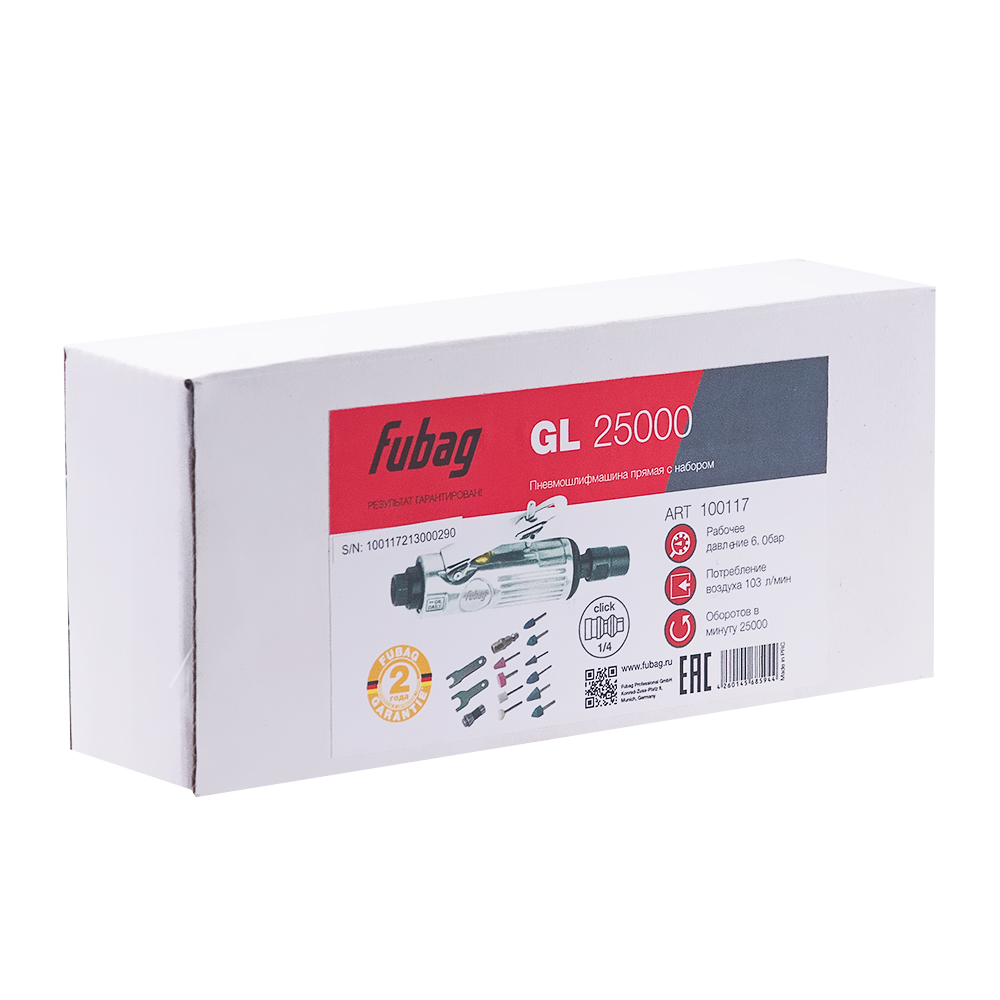 Характеристики FUBAG Пневмошлифмашина прямая GL25000 + набор
