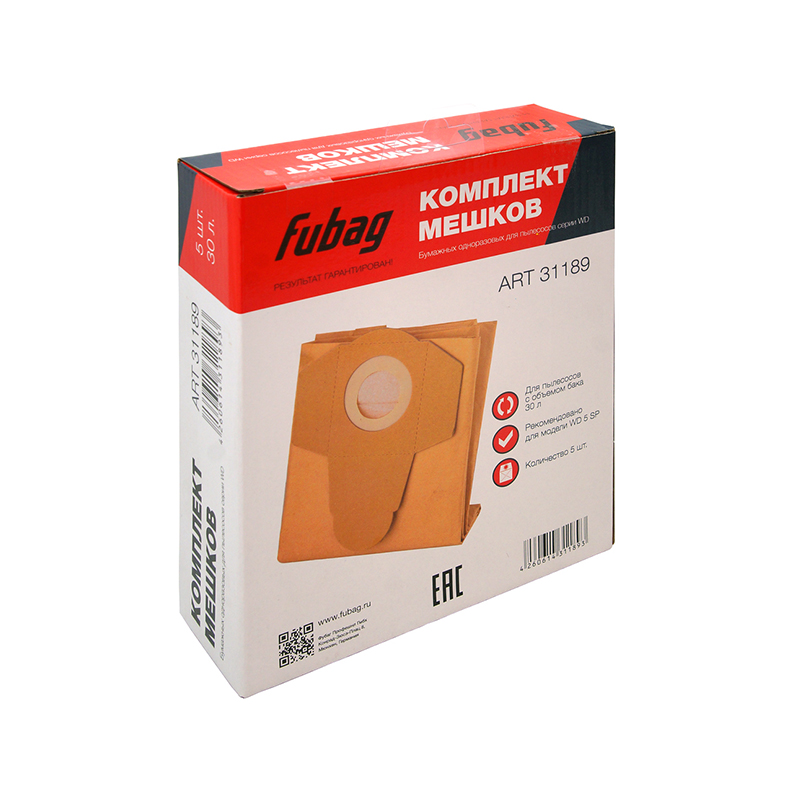 Отзывы о FUBAG Комплект мешков одноразовых 30 л для пылесосов серии WD 5SP_5 шт.
