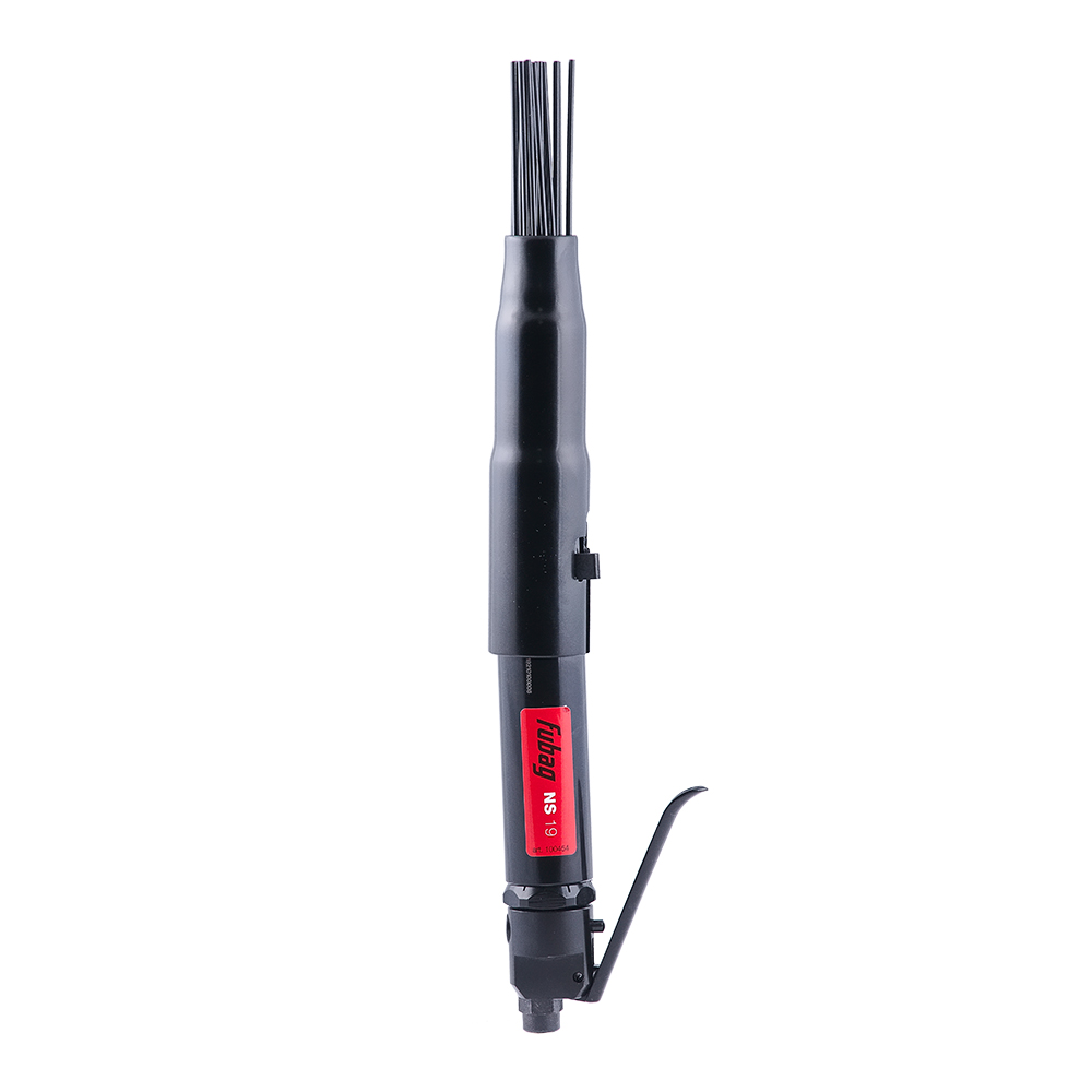Пневматический очиститель окалины NS 19 быстро удаляет с любых поверхностей ржавчину, старое лакокрасочное покрытие, остатки плавленого металла (сварные брызги), а также очищает литые металлические изделия и слитки от заусенцев. • Частота ударов в минуту - 4600• 19 игл из специальной стали в комплекте