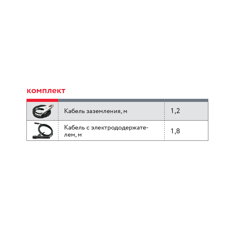 | Кабель заземления 1,2 м, Кабель с электрододержателем 1,8 м, Инструкция |