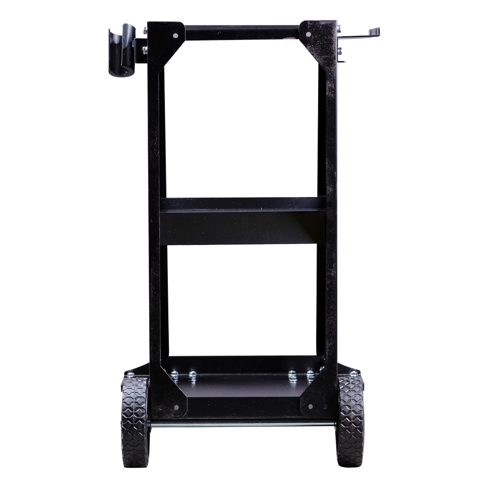 Конструкция на четырех колесах: 2 передних поворотных, 2 задних фиксированных на оси. Верхняя площадка с 4 отверстиями под резиновые ножки аппарата обеспечивает надежную фиксацию. Перемещение осуществляется за ручку самого аппарата.