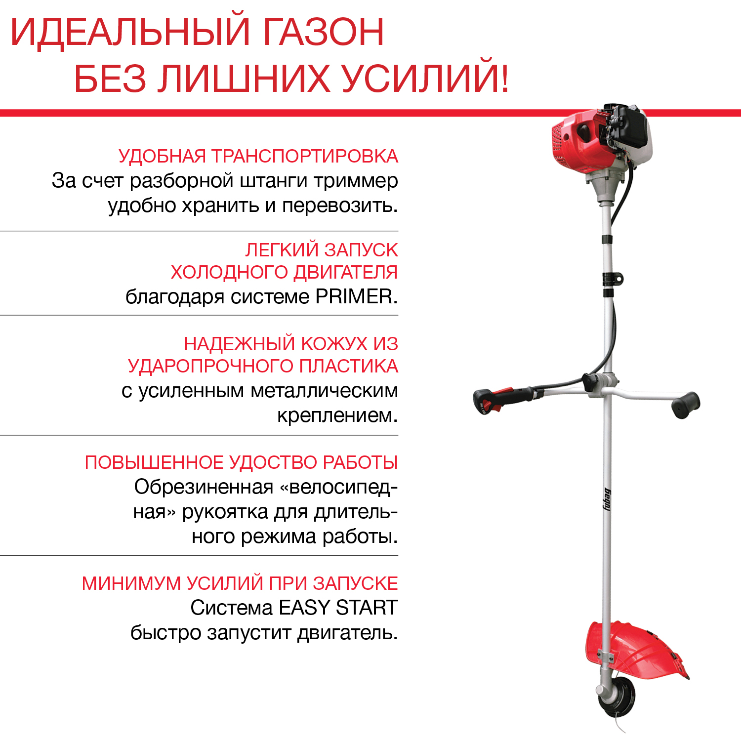 Основные преимущества бензинового триммера FPT 33R: